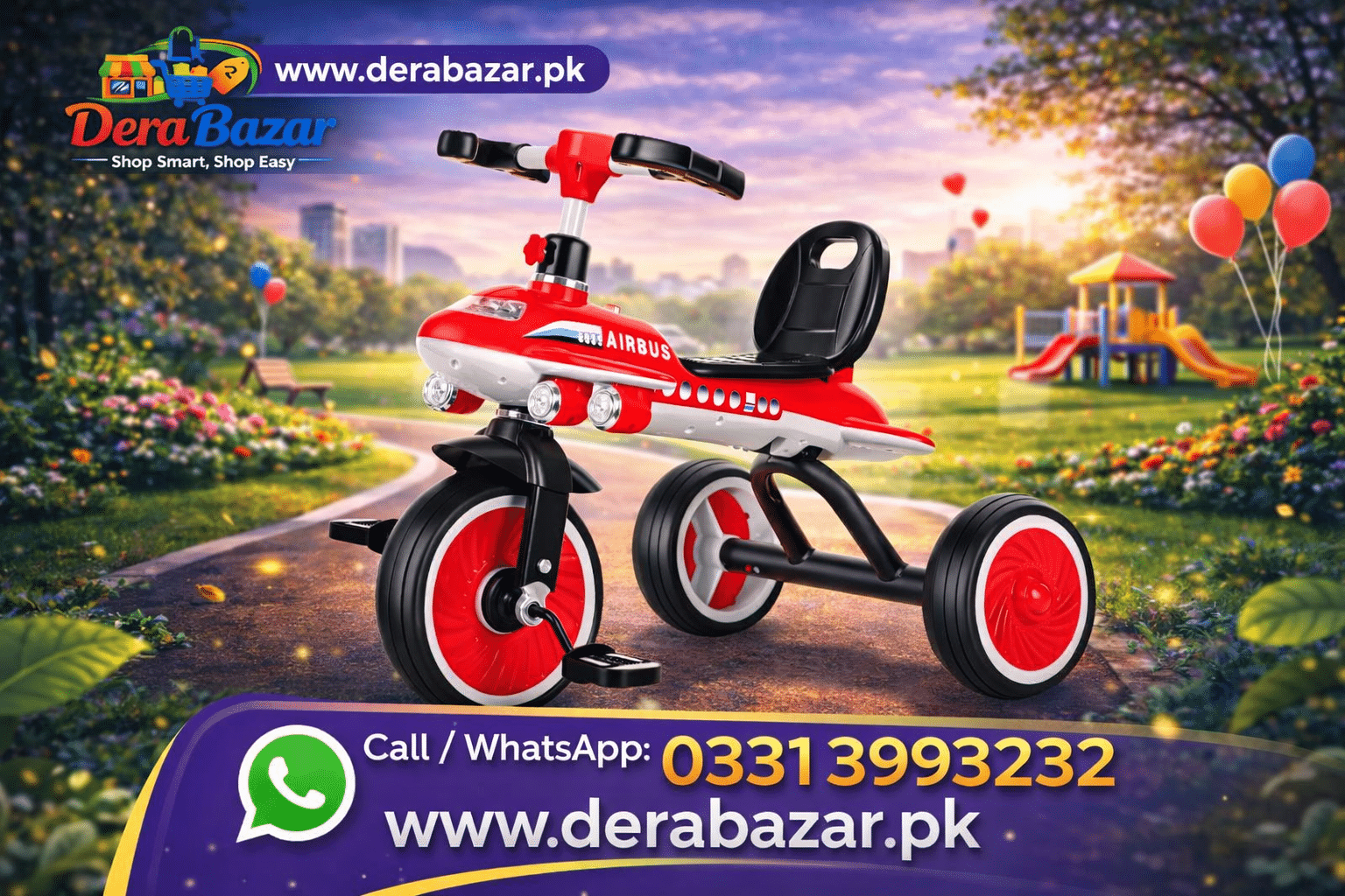 Bring excitement to your child’s playtime with the Airbus Ride-On Tricycle, a unique airplane-inspired kids ride that combines fun, comfort, and safety. This ride-on toy is specially made for toddlers and young kids who love adventure and outdoor activity.