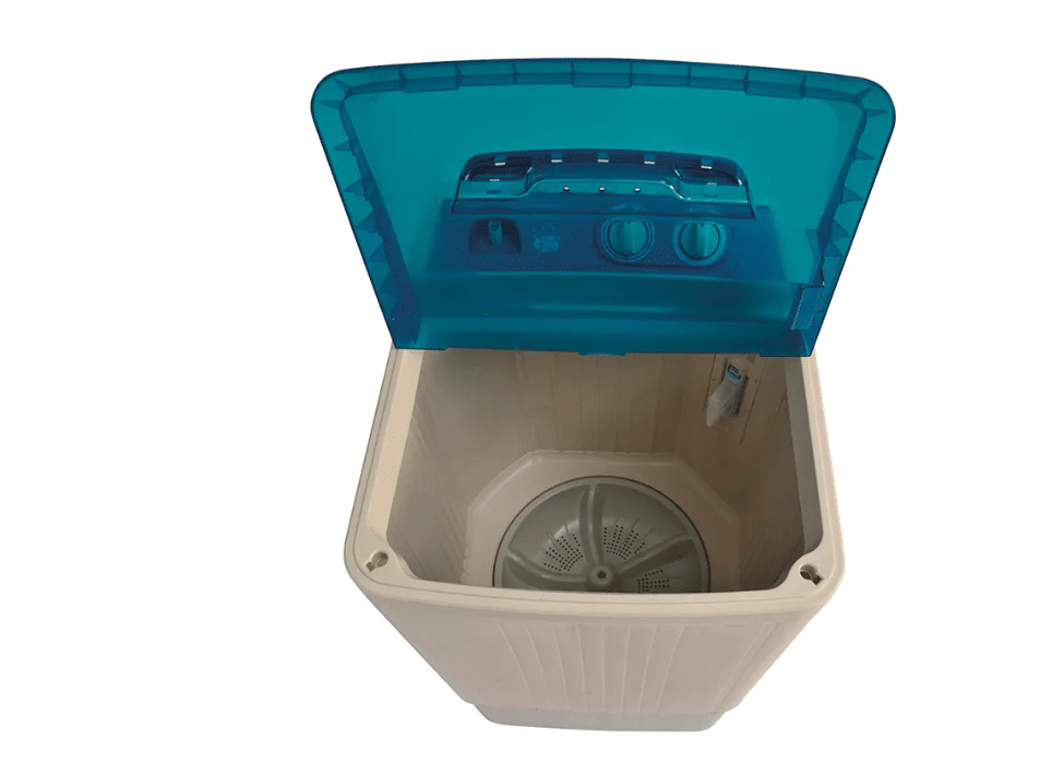 The interior stainless steel drum features Haier’s signature Pillow Drum design. The small, rounded protrusions create a cushion of water that prevents clothes from snagging or rubbing harshly against the drum. Combined with the powerful pulsator, it creates a “Storm Wash” effect that lifts deep-seated dirt while keeping your fabrics looking new.
